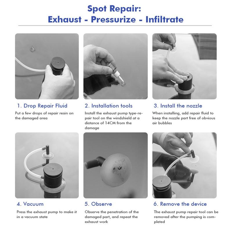 Repare rapidamente pequenas lascas e rachaduras no para-brisa em casa com este kit de reparação DIY para para-brisas, que inclui um sistema de vácuo com bomba de ar. O design de exaustão por pressão negativa ajuda a retirar o ar e a humidade presos na área danificada, permitindo que a resina de cura UV flua de forma mais limpa para um acabamento mais claro. A resina de reparação transparente incluída foi concebida para curar sob luz UV (luz solar ou lâmpada UV), ajudando a restaurar a visibilidade e a reduzir a aparência dos danos, ao mesmo tempo que ajuda a evitar que as rachaduras se espalhem ainda mais. Compacto e sem necessidade de energia, é um kit prático para manter no seu carro para manutenção rápida, especialmente após lascas causadas por pedras durante a condução em autoestradas.