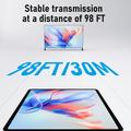 O sistema utiliza uma ligação Wi-Fi de 5 GHz para um desempenho mais estável e interferência reduzida em comparação com ambientes congestionados de 2,4 GHz. Com um alcance sem fios prático de até 30 m (dependendo da linha de visão e do ambiente), pode colocar a sua TV ou projetor onde ficar melhor, sem precisar de passar longos cabos HDMI pela sala.