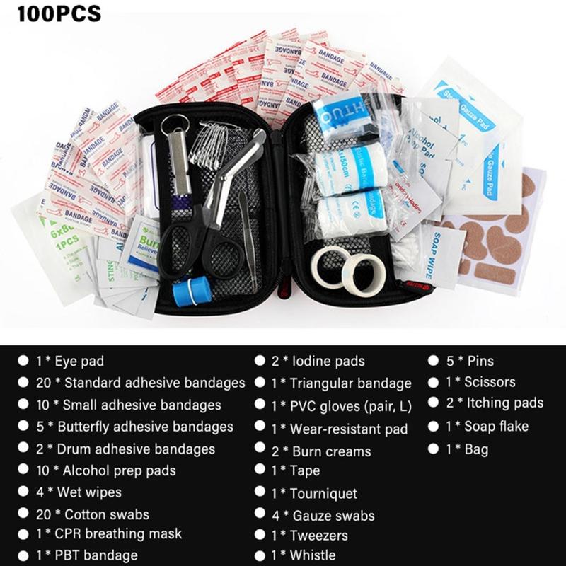 Kit de primeiros socorros de emergência 100 em 1 com bolsa impermeável para camping, viagens e casa