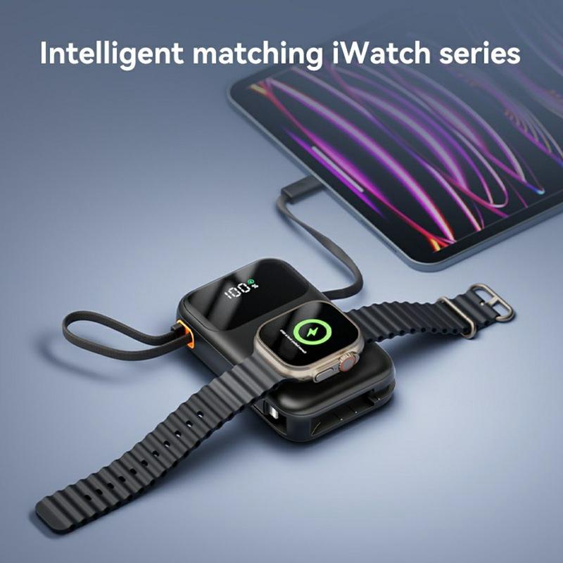 - Carregamento sem fios para Apple Watch: Inclui suporte de carregamento sem fios dedicado para Apple Watches, fornecendo energia cómoda e sem cabos para o seu smartwatch.