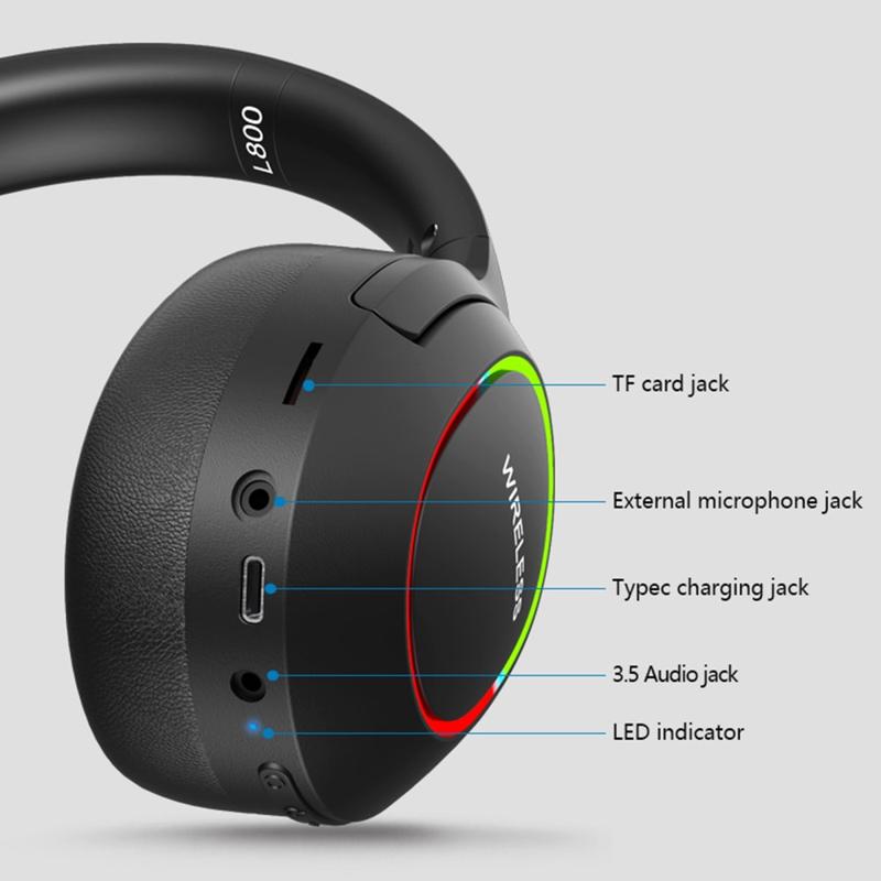 L800 Auscultador sem fios para música e jogos Auscultador Bluetooth dobrável com luzes LED / microfone - Preto