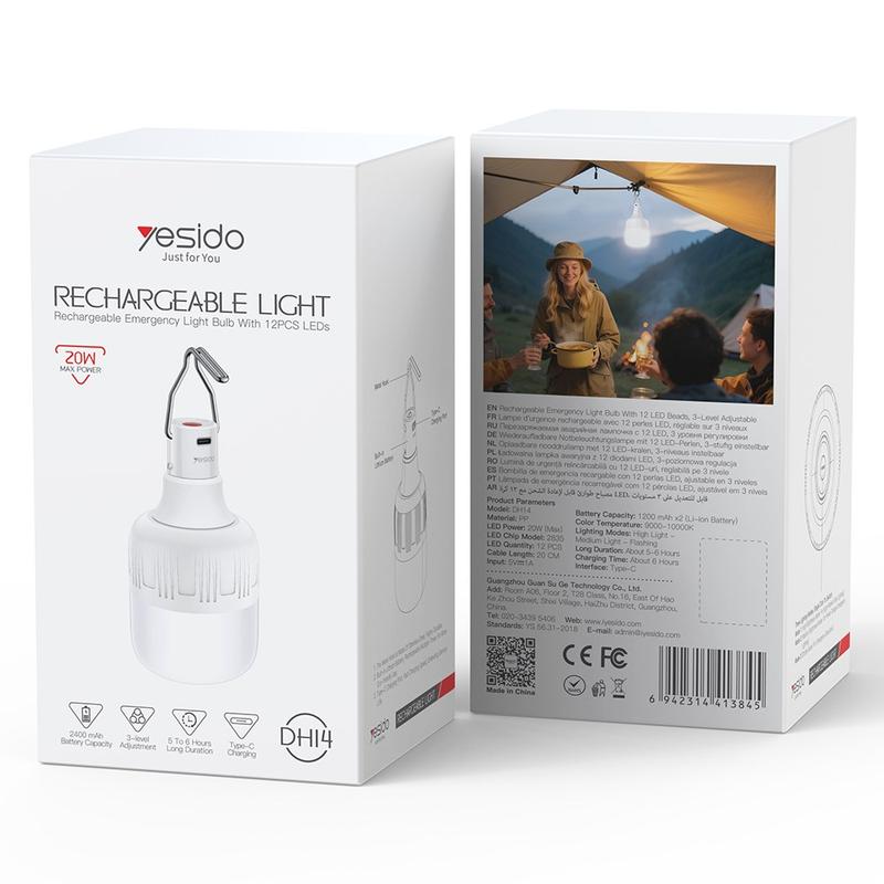 Esteja preparado para aventuras ao ar livre e cortes de energia inesperados com a lâmpada de emergência recarregável YESIDO DH14. Concebida como uma lanterna suspensa portátil, proporciona uma iluminação brilhante de 360° através de 12 LEDs de alta qualidade, tornando-a ideal para acampamentos, mercados noturnos, emergências domésticas ou iluminação temporária em espaços exteriores.
