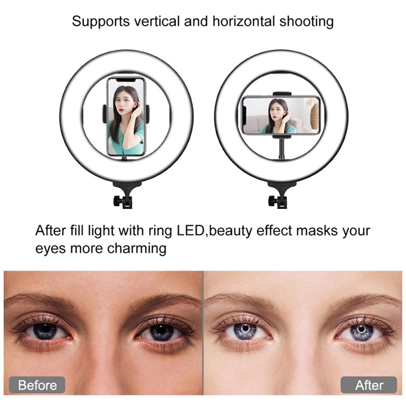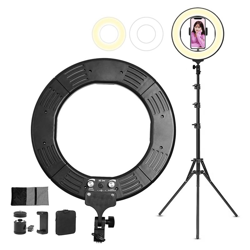 Lâmpada de mesa regulável de 18" para Selfie Ring Light Fill-in Lâmpada de estúdio para fotografia com suporte para telemóvel