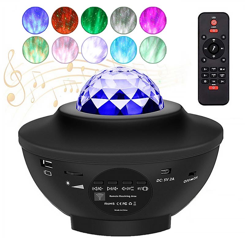 Ao oferecer 21 modos que transformam o seu quarto numa galáxia, este modelo possui uma coluna integrada que lhe permite efetuar streaming de música via Bluetooth ou através de uma pen. Além disso, o controlo remoto incluído oferece domínio total sobre todas as funções.