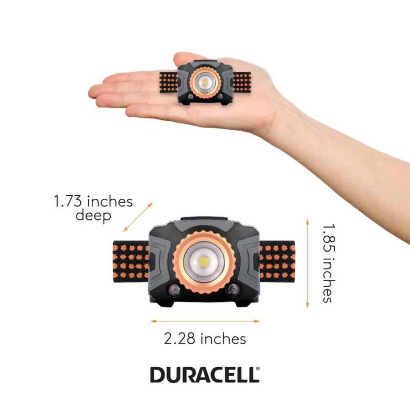 Lanterna de cabeça LED focada Duracell com 3 modos de luz, função de zoom - 350lm