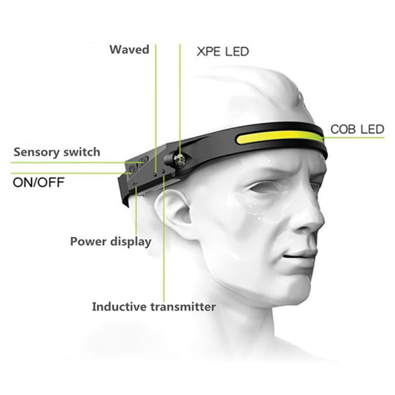 Lanterna de cabeça LED recarregável LX200 - Lanterna de cabeça COB super brilhante com 4 modos de iluminação, à prova de água