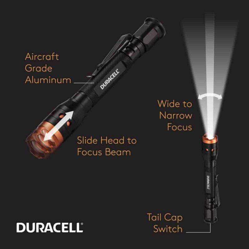 Lanterna LED Duracell em alumínio com função de zoom - 150lm