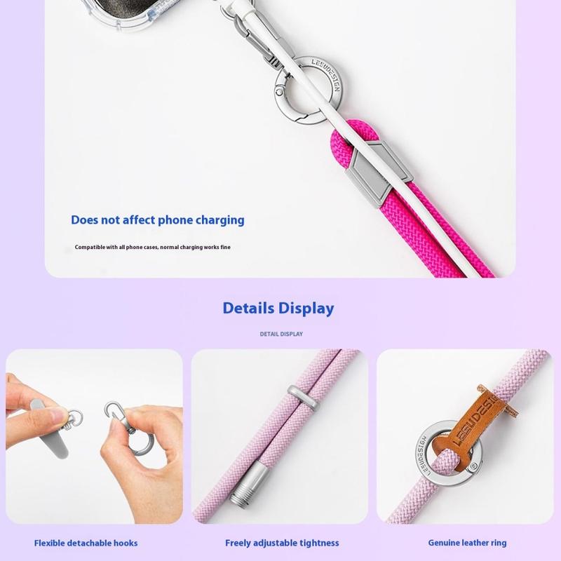 O LEEU DESIGN Crossbody Phone Lanyard é a combinação perfeita de conforto, força e estilo. Com materiais duráveis, comprimento ajustável e uma aba de amarração segura, foi concebido para quem valoriza a funcionalidade e a moda nos seus acessórios.