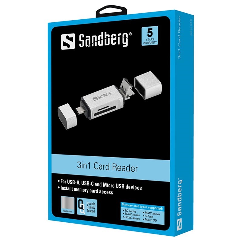 - Leitor portátil de cartões 3-em-1, da Sandberg