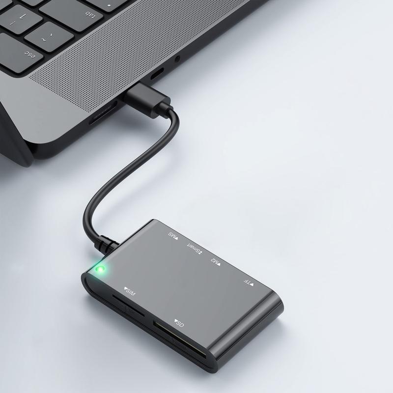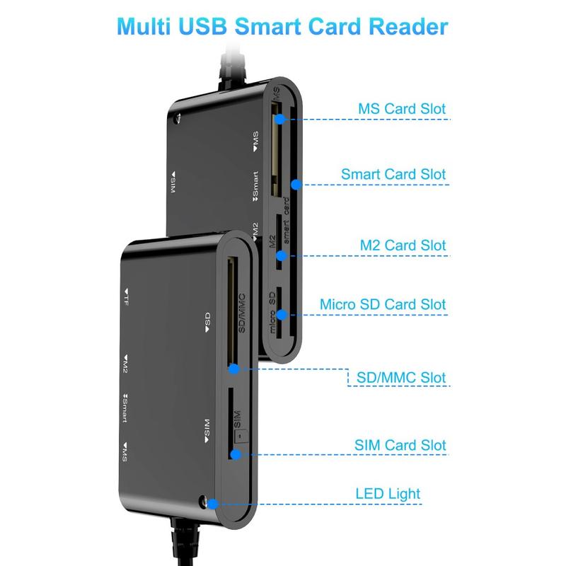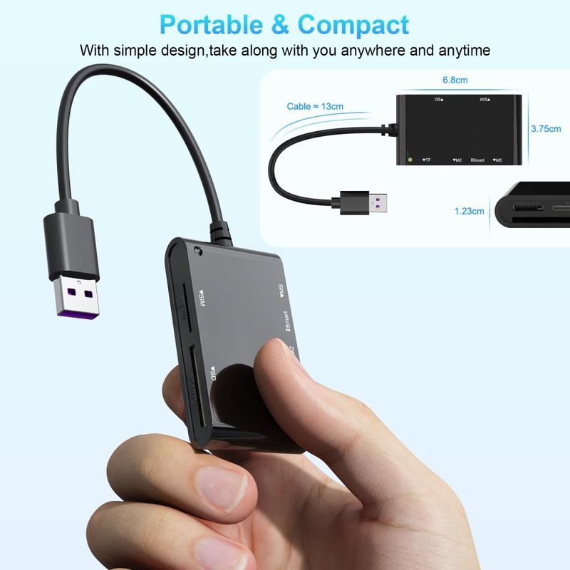 - Leitor de cartões 6 em 1 - Suporta cartões Smart, MS, M2, TF, SIM e SD para uma ampla usabilidade.