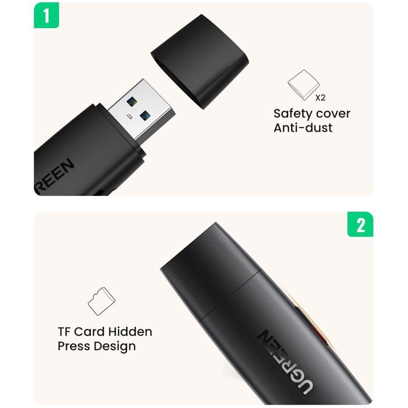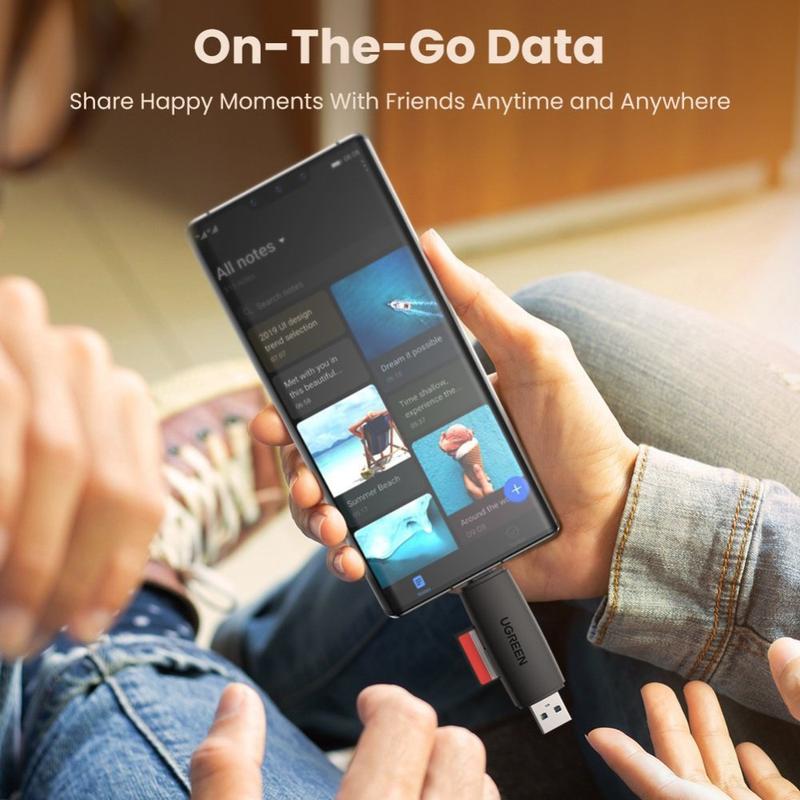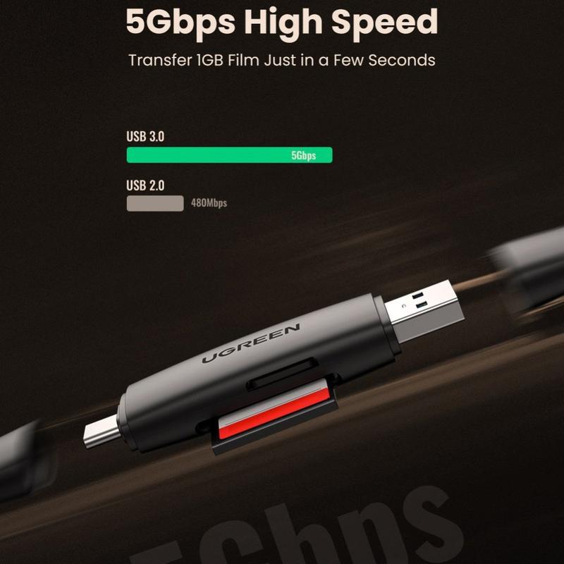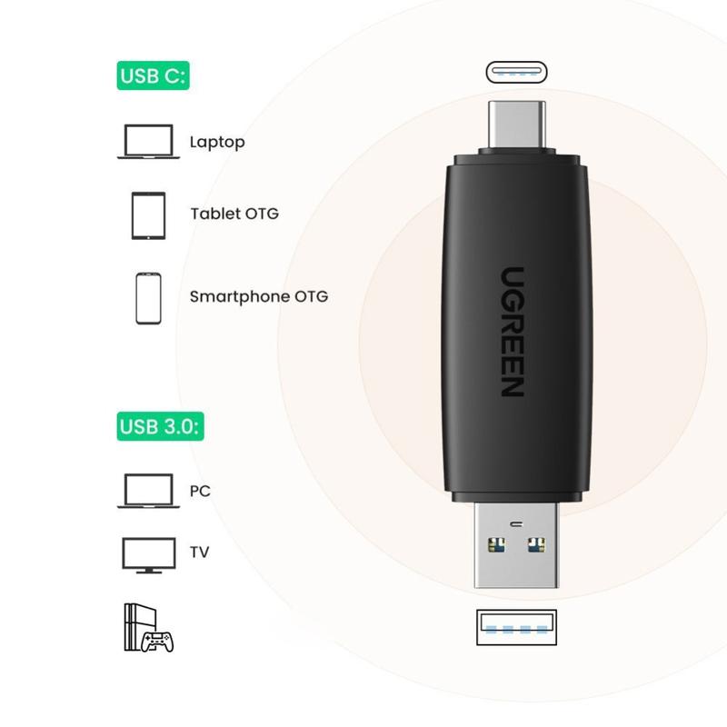 Leitor de cartões SD microSD Ugreen USB-C e USB-A 5 Gbps - Adaptador OTG 2 em 1 com duas ranhuras