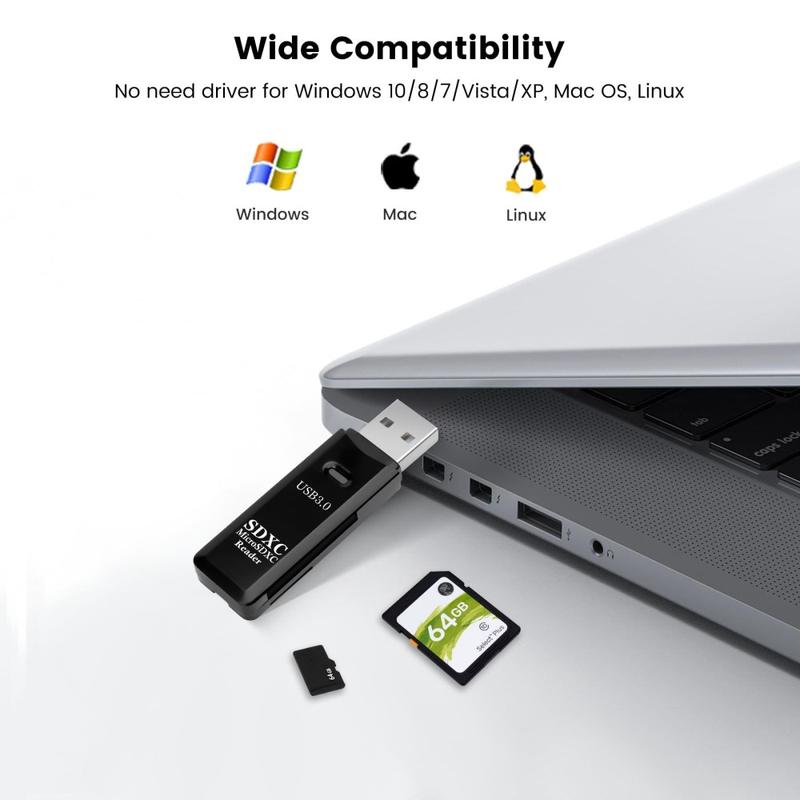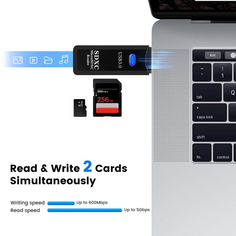 Leitor de cartões USB 3.0 2 em 1 para cartões SD e TF - Adaptador de cartões de memória de duas ranhuras com 5 Gbps