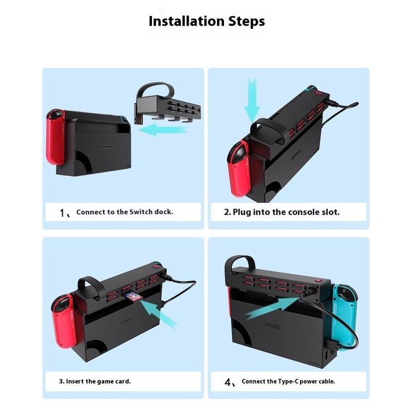 NS02 Leitor de cartões de jogo e comutador para Nintendo Switch/Switch OLED - Hub de armazenamento de 8 ranhuras com controlo remoto sem fios