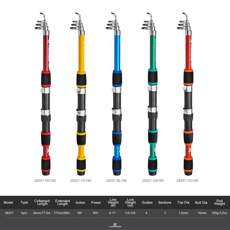 LEO 28257 Cana de pesca telescópica em fibra de vidro de 1.73m - Mini cana de viagem ultra-leve