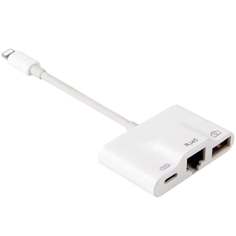 Adaptador de Rede Lightning 3 em 1 de 8 pinos / RJ45 Ethernet LAN com porta USB 2.0 / Lightning 8 pinos