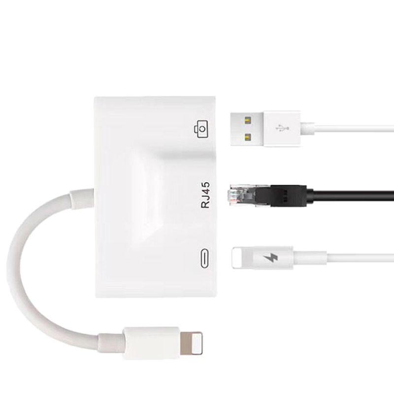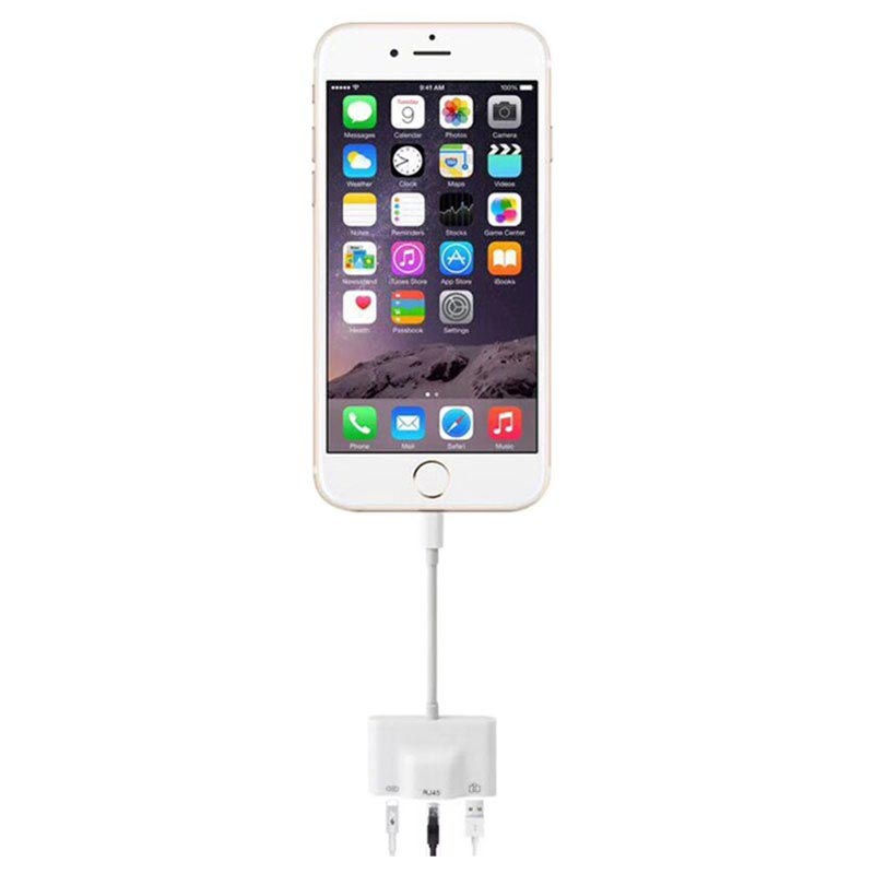 Este adaptador multifuncional com cabo lightning 3 em 1 possui uma porta de rede RJ45 Ethernet LAN, uma porta USB 2.0 e uma porta lightning de 8 pinos com carregamento de passagem. O adaptador suporta conexão de Internet de 10/100 Mbps e é compatível com todos os iPhones e iPads da Apple de 8 pinos que funcionem com iOS 10 ou mais recente.
