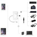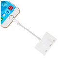 - A porta Lightning adicional de 8 pinos permite-lhe carregar o seu dispositivo enquanto usa o adaptador