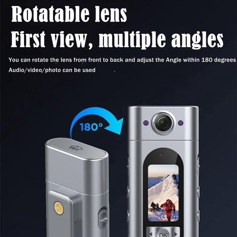 - Lente rotativa de 180 ° - Gire uma vez para paisagem, novamente para retrato; perfeito para guidão de bicicleta, laterais de capacete ou orientação de câmera corporal.