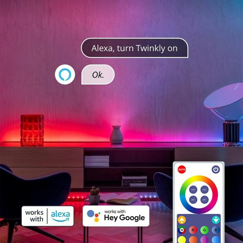 - Tecnologia RGBIC: Apresenta várias cores em simultâneo para efeitos de iluminação dinâmicos.