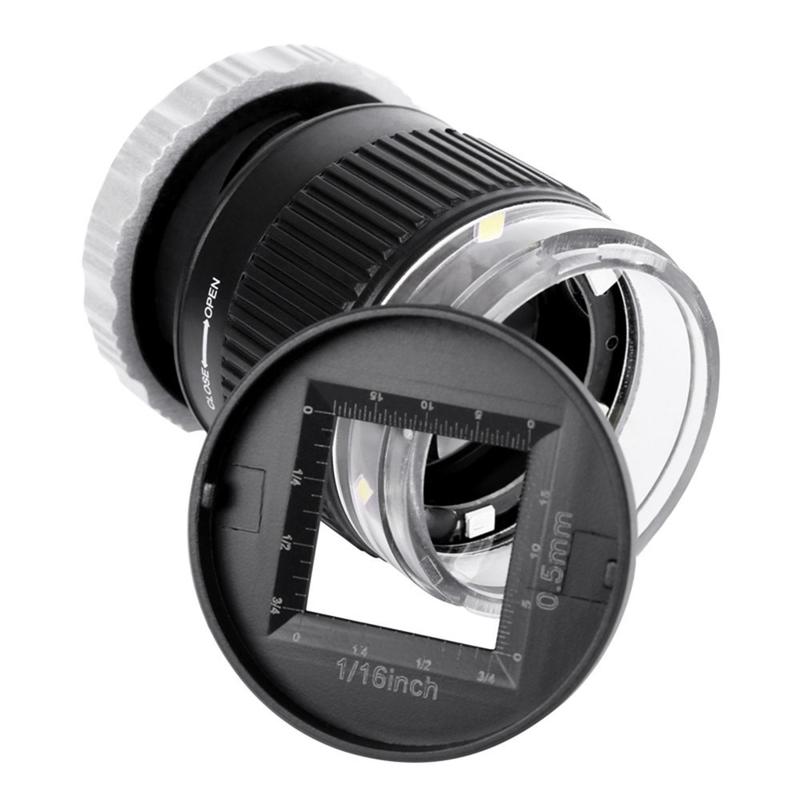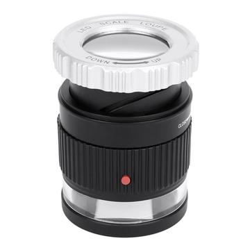 Lupa de escala LED e UV com focagem ajustável - 30x, corpo metálico, lente de 30 mm