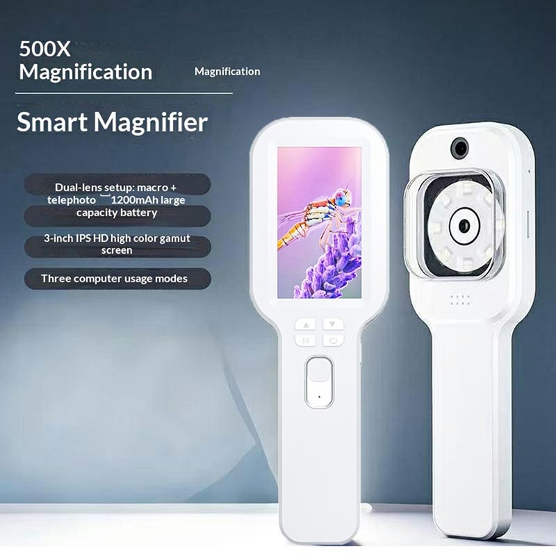 Lupa digital portátil V8 500X - Lupa eletrónica IPS HD de 3″ com iluminação LED