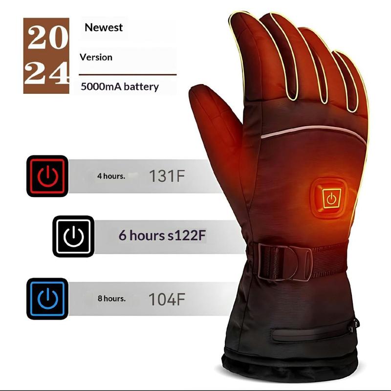 Luvas elétricas aquecidas com 2 baterias de 5000mAh, compatíveis com ecrãs táteis, design à prova de água e 3 níveis de aquecimento para utilização ao ar livre no inverno