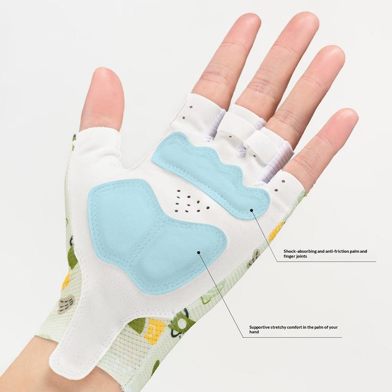 Luvas de ciclismo para crianças com padrão cartoon Rockbros / Luvas de bicicleta respiráveis com meia-dedo e palma com absorção de choque