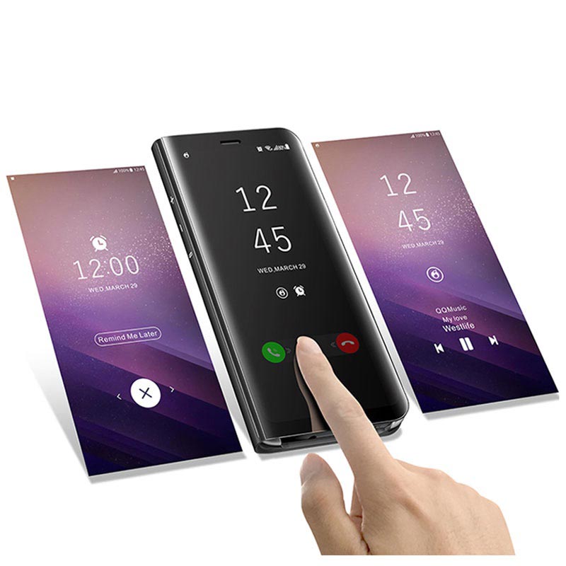 - Flip case premium para Samsung Galaxy Note8 com superfície brilhante semelhante a um espelho