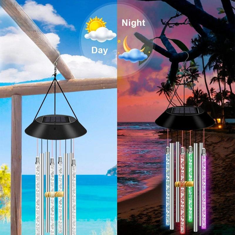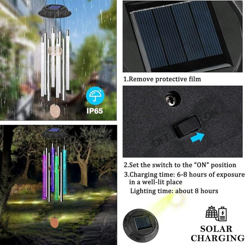 Transforme pátios, varandas e ramos de árvores num arco-íris em movimento. Este carrilhão de vento alimentado a energia solar combina tubos de acrílico que balançam suavemente com sete LEDs que mudam de cor, passando do vermelho para o violeta após o anoitecer. Um painel monocristalino de 50 × 50 mm carrega a bateria Ni-MH de 600 mAh incorporada durante o dia e, em seguida, a lâmpada liga-se automaticamente à noite para até 12 horas de brilho hipnotizante - sem fios, sem contas de energia, apenas um ambiente sem esforço no interior ou no exterior.