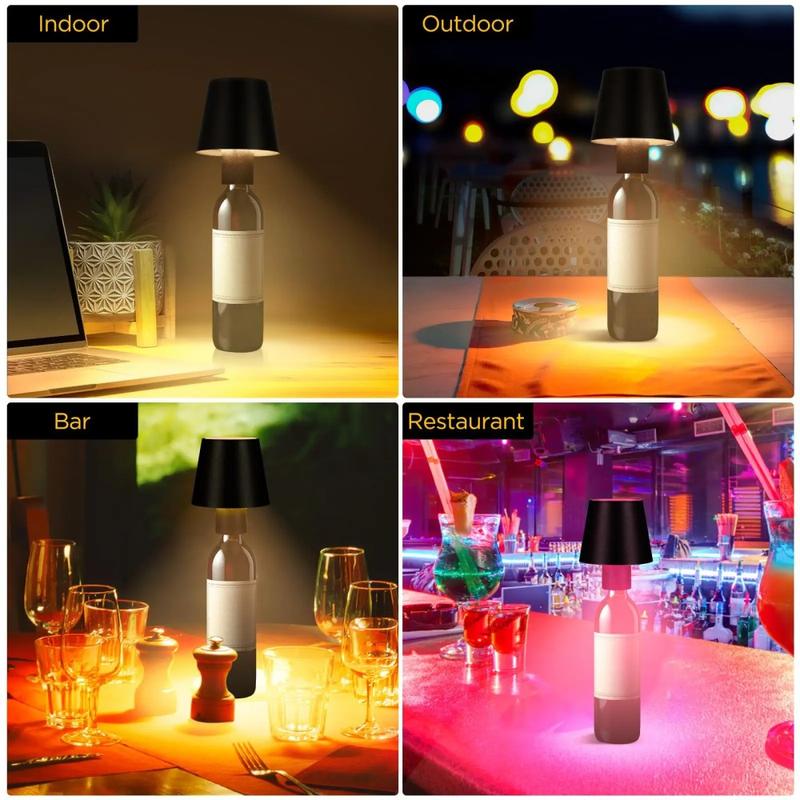 Luz de garrafa de vinho com controlo tátil Lâmpada LED com 3 cores variáveis Luz de secretária portátil para bar, festa - Preto