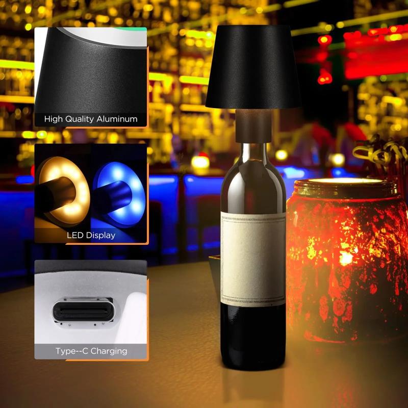 Luz de garrafa de vinho com controlo tátil Lâmpada LED com 3 cores variáveis Luz de secretária portátil para bar, festa - Branco