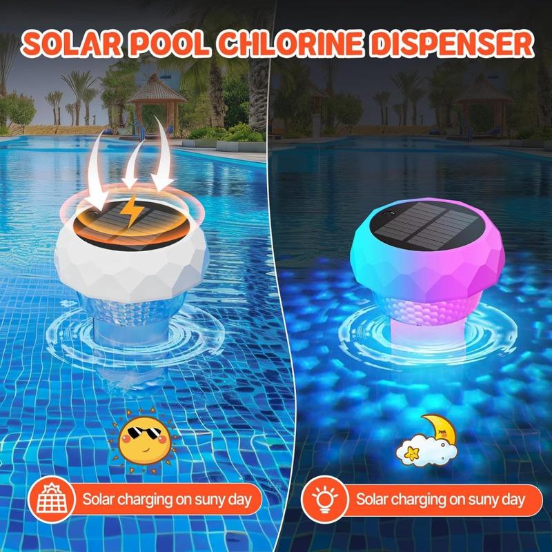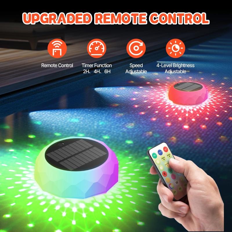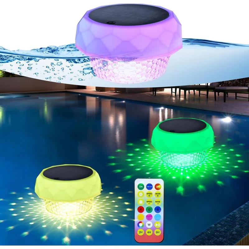 Luz de piscina flutuante alimentada por energia solar com caixa de desinfeção e LEDs RGB - Lâmpada com temporizador e controlo remoto, 170 × 100 mm IPX7