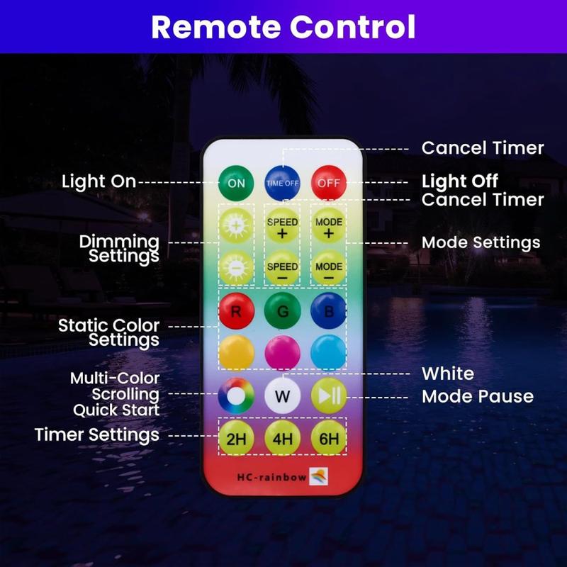 - O controlo remoto permite-lhe mudar de cor ou desligar sem entrar na água