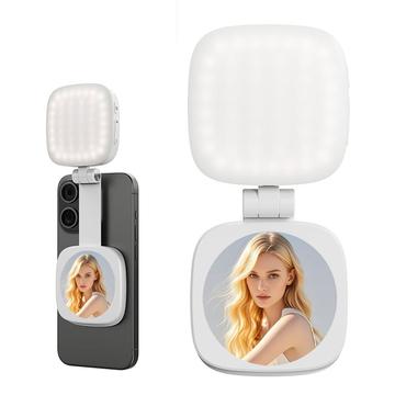Luz de preenchimento magnética 2 em 1 para selfies com espelho de maquilhagem - Lâmpada portátil para fotografia com smartphone