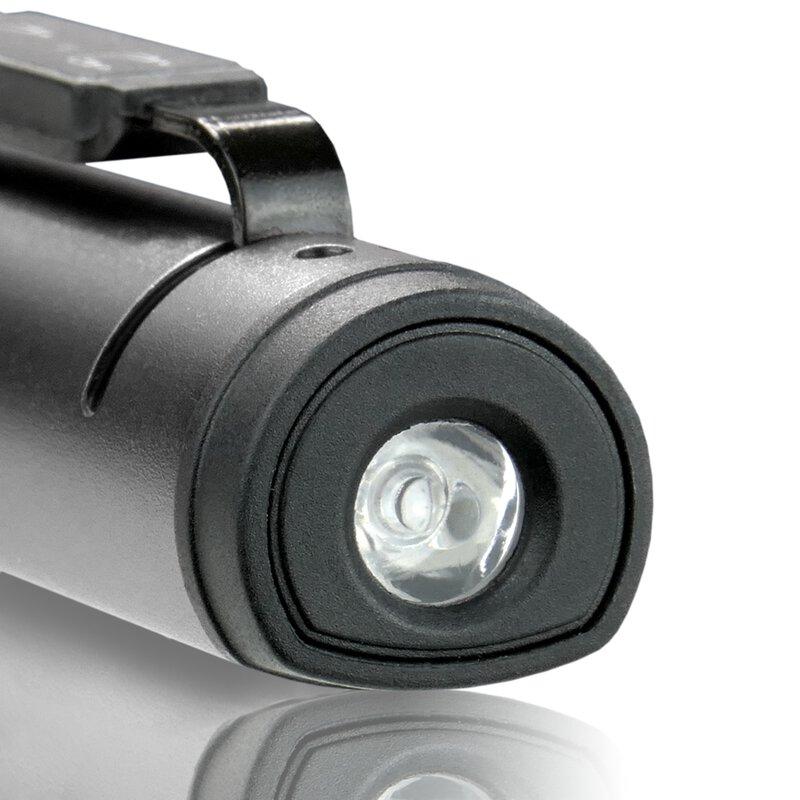- Quatro fontes de luz independentes: luz universal de longo alcance, luz lateral forte com amplo fluxo luminoso, luz UV avançada (comprimento de onda 365nm) e ponteiro laser multiuso (700nm)