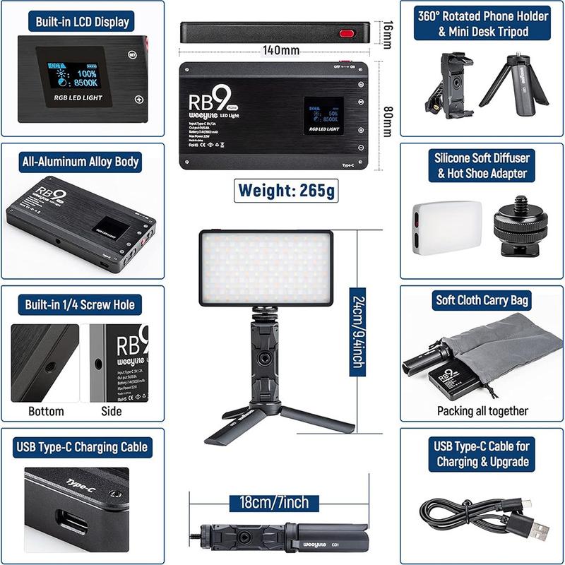 Eleve o nível de todas as filmagens, desde clips do TikTok a entrevistas em estúdio. O Weeylite RB9 inclui 12 W de potência de espetro total, precisão de cor de nível profissional e controlo remoto de aplicações num painel de 265 g que cabe facilmente no saco da câmara.