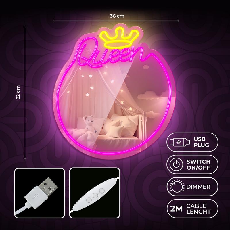 Melhore o seu interior com o Neon MIRROR LED, uma mistura perfeita de iluminação ambiente e um prático espelho rodeado por uma elegante moldura de néon. A luz LED cria uma atmosfera acolhedora e relaxante, tornando-o ideal tanto para a decoração da casa como para o uso quotidiano. A sua aplicação versátil torna-o numa peça de destaque em salões de serviço, bem como em espaços residenciais.