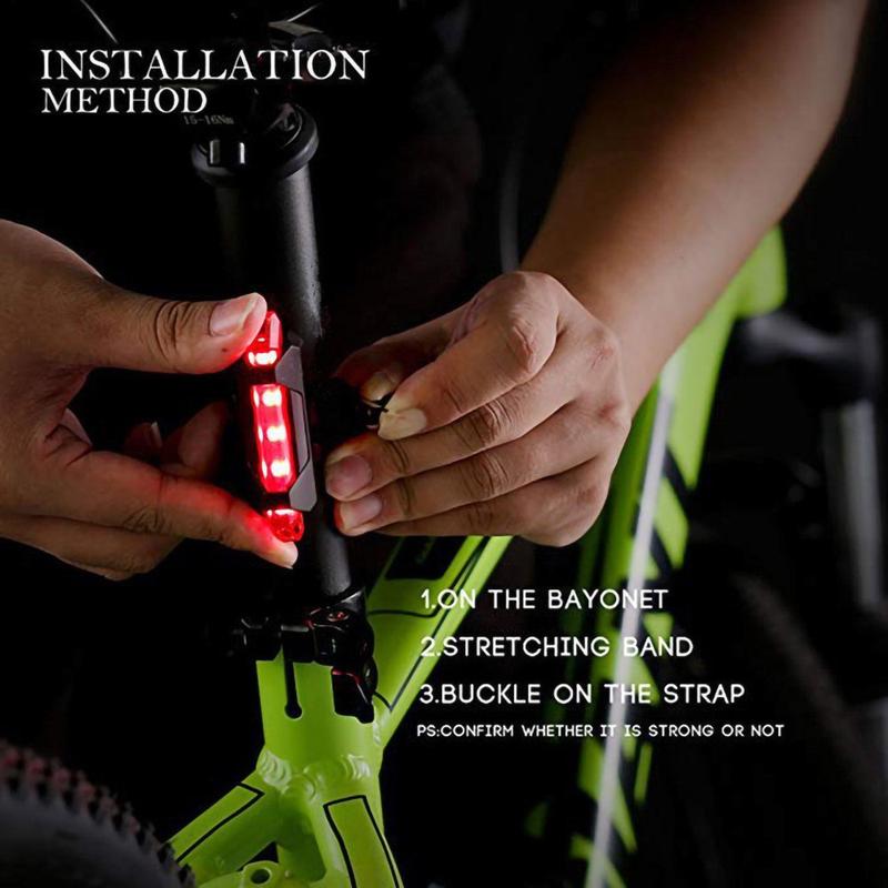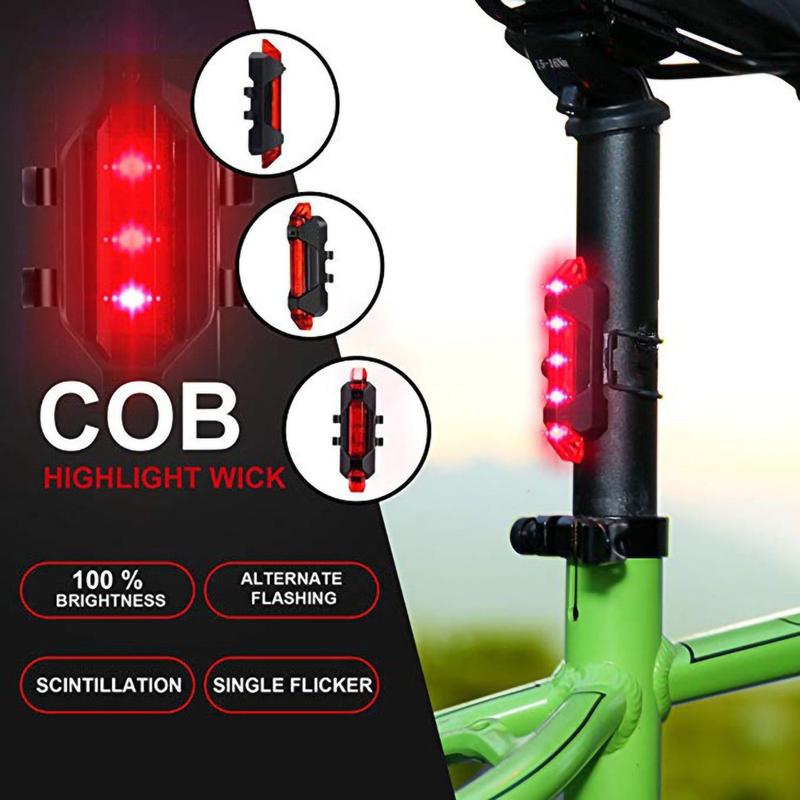 Luz traseira flash recarregável por USB à prova de água, luzes de aviso para bicicletas, desligamento automático quando totalmente carregada