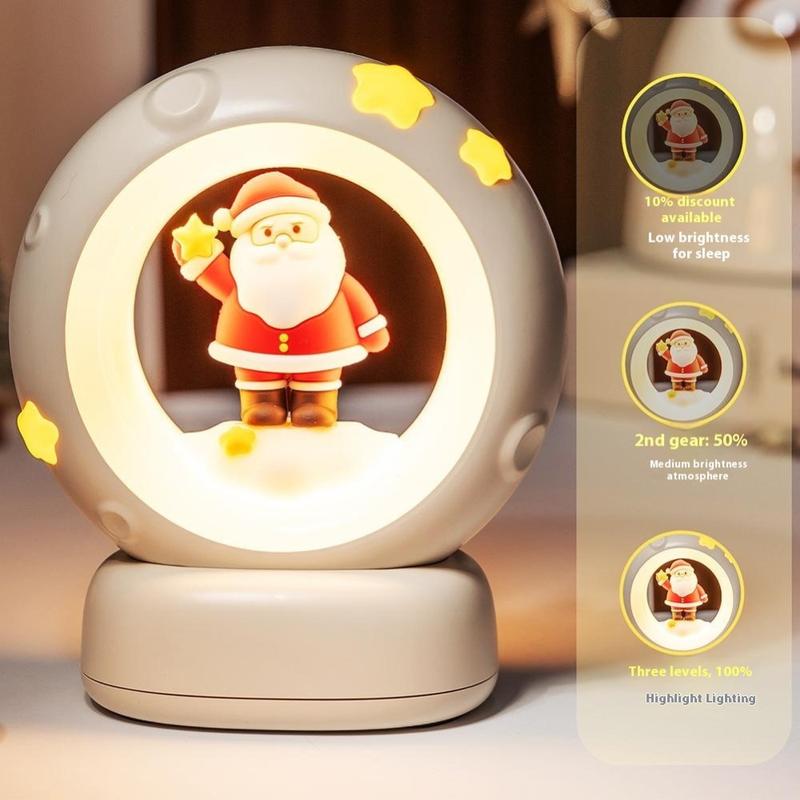 Traga calor, conforto e encanto ao quarto de qualquer criança com a luz nocturna de Natal, um candeeiro de cabeceira de toque suave concebido para criar um ambiente de sono acolhedor e seguro. Com brilho ajustável, bateria de longa duração e um adorável design de desenho animado, é o companheiro noturno perfeito para crianças e famílias durante a época festiva e mais além.
