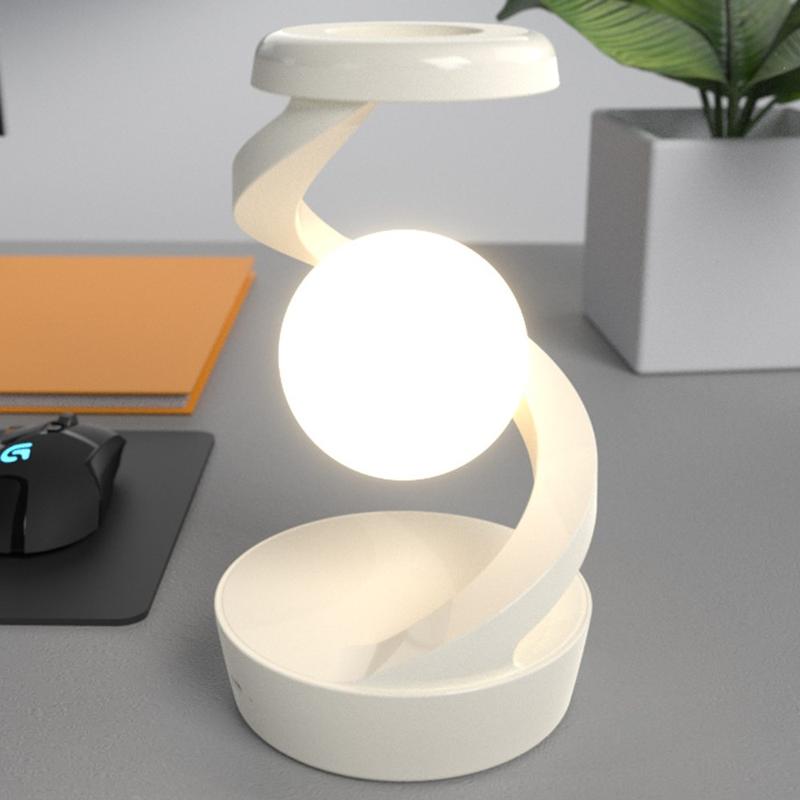Luz nocturna RGB de levitação em espiral com base de carregamento sem fios de 15W