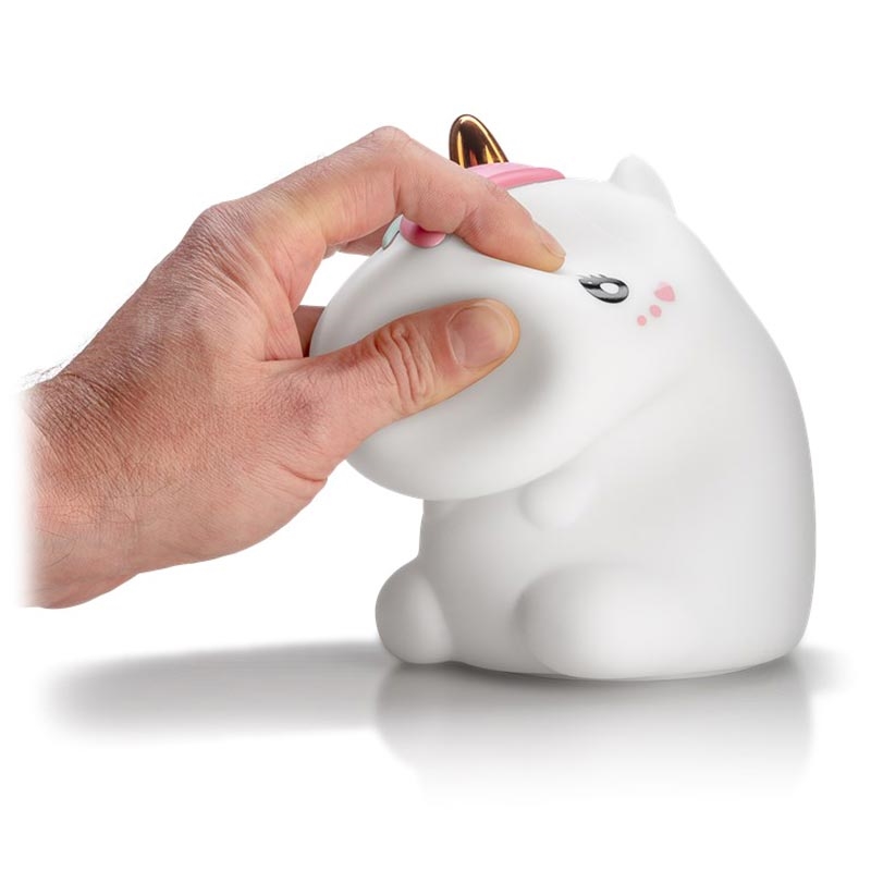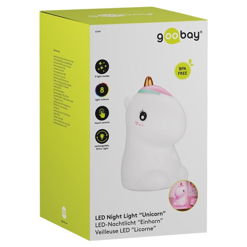Candeeiro de presença simplesmente adorável - perfeito para o quarto de uma criança! A lâmpada LED Goobay apresenta um branco quente e 7 luzes RGB coloridas, 3 modos de luz e um sensor de toque. Feita de silicone macio, a lâmpada Goobay RGB é totalmente segura para uso. Toque na parte superior da lâmpada Goobay para alterar o modo de iluminação (branco quente, mudança de cor RGB, cor RGB permanentemente ativada).