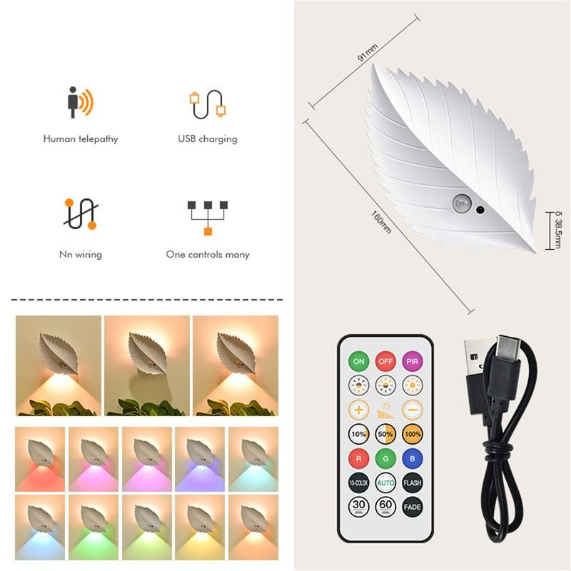 Adicione um brilho acolhedor e confortável a qualquer divisão com esta luz noturna RGBW em forma de folha, concebida para ser decorativa e, ao mesmo tempo, proporcionar iluminação prática exatamente quando precisa. Combina deteção de movimento humano com a conveniência do controlo remoto, para que possa acender automaticamente quando passa por ela ou ser ajustada a partir da cama, sofá ou secretária. Com regulação contínua da intensidade e 10 opções de cores, pode alternar entre uma luz noturna suave e uma iluminação ambiente para noites relaxantes, quartos infantis ou orientação no corredor.