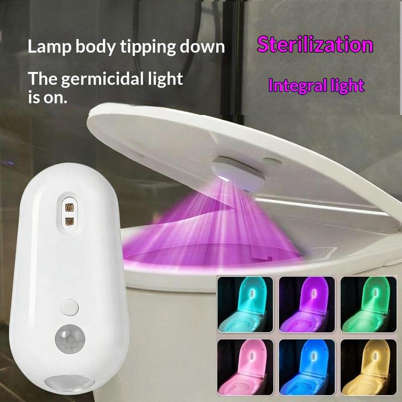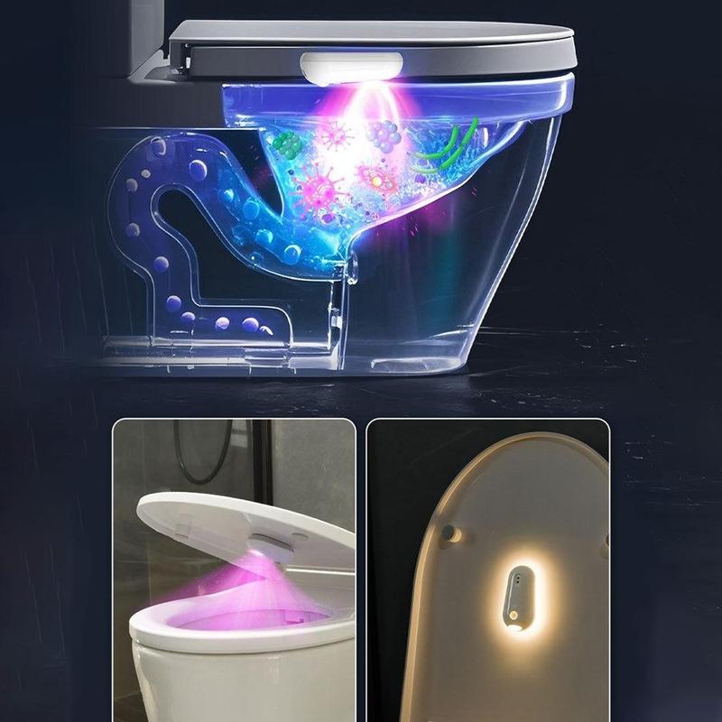 Luz de casa de banho com sensor de movimento RGB F21 e esterilização por UV - Luz noturna recarregável para casa de banho, LED multicolorido, carregamento por USB-C