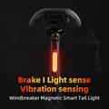 Luz traseira magnética inteligente Rockbros com travão - Luz traseira recarregável USB-C para bicicleta, deteção automática de travagem, IPX6, visibilidade de 200 m