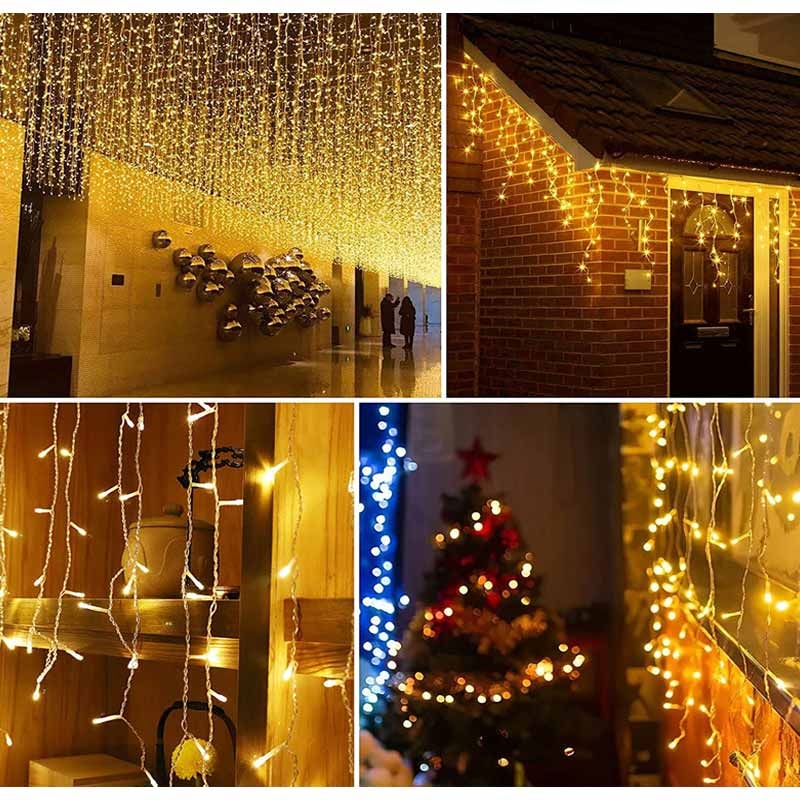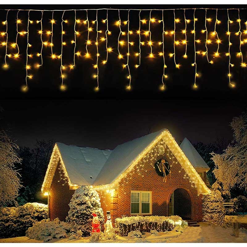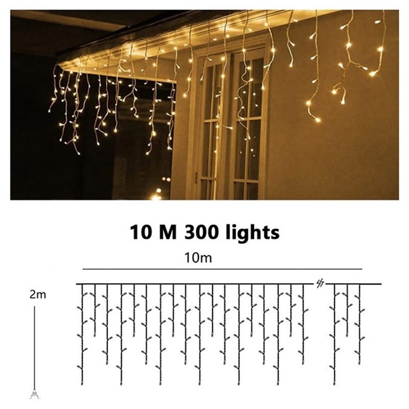 - Design de cortina em cascata com 300 LEDs brancos quentes para um brilho suave e convidativo