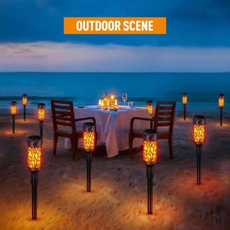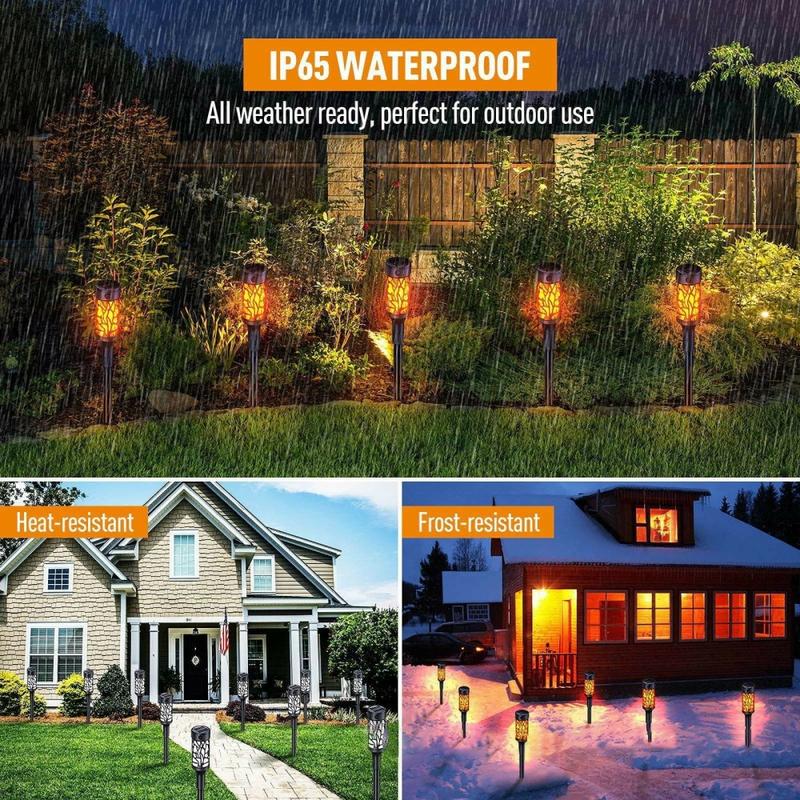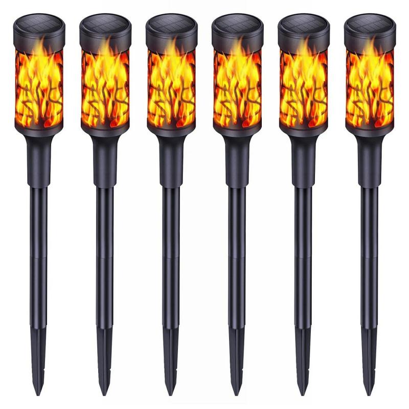 Luzes solares para caminhos com efeito de chama - Conjunto de 6, estacas de tocha cintilante de 63 cm com sensor de movimento, lâmpadas de jardim e relvado à prova de água IP65