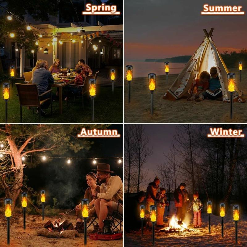 Crie um brilho de fogueira sem fumo ou cabos. Cada estaca contém tiras de LED que imitam chamas reais, ligando-se automaticamente ao anoitecer e dançando até ao amanhecer. Uma bateria solar de 600 mAh alimenta até 14 horas de luz quente e cor de laranja, enquanto um sensor de infravermelhos detecta movimentos num raio de 3-5 m para intensificar o efeito à medida que os convidados se aproximam. Construídas em ABS à prova de intempéries, estas luzes instalam-se em segundos - basta empurrar o espigão para o solo e desfrutar de um ambiente acolhedor todas as noites.