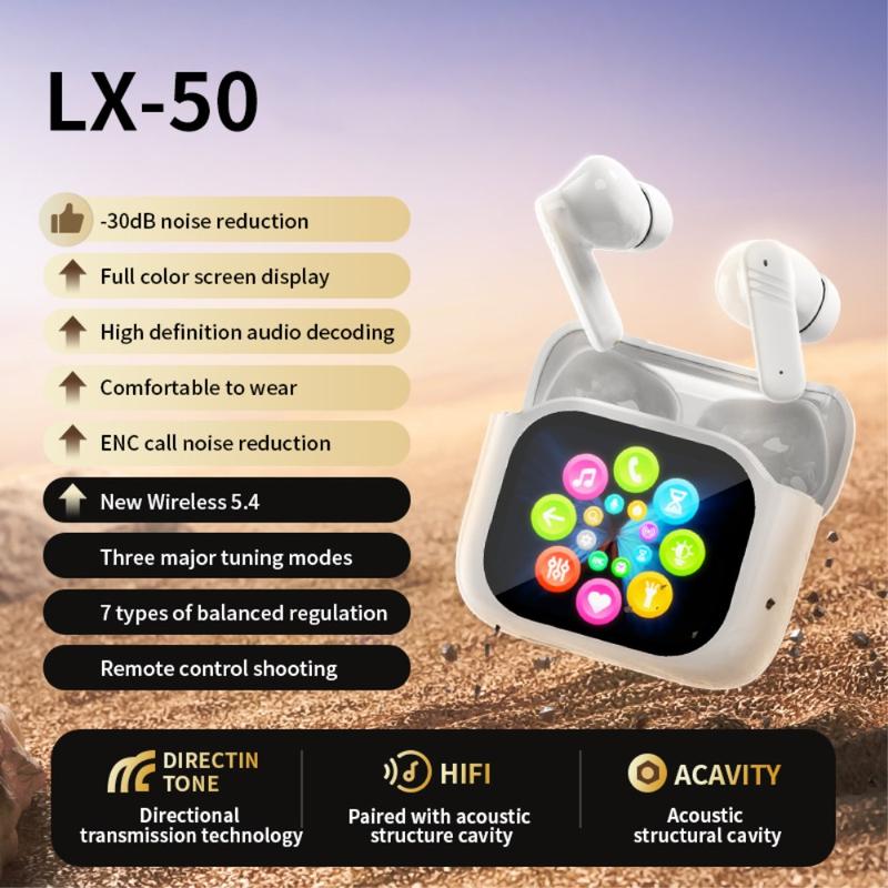 LX-50 Auscultadores verdadeiramente sem fios com estojo de carregamento com ecrã tátil - ANC+ENC, Bluetooth 5.4