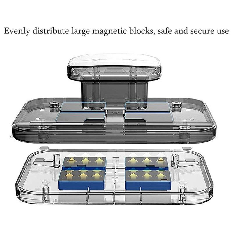 - Design magnético de dupla face: Utiliza ímanes fortes para manter firmemente as duas almofadas de limpeza juntas através do vidro, permitindo-lhe limpar superfícies interiores e exteriores simultaneamente sem a necessidade de acesso externo arriscado.