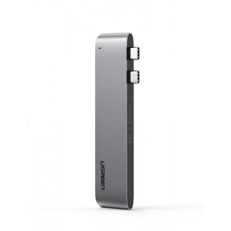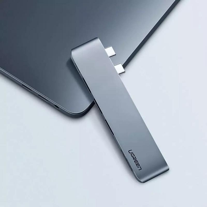Ugreen CM251 Hub USB-C 6 em 1 para MacBook Pro, MacBook Air - Passagem PD de 100 W, 3× USB-A 5 Gb s, ranhuras para cartões SD/microSD, alumínio cinzento-espacial